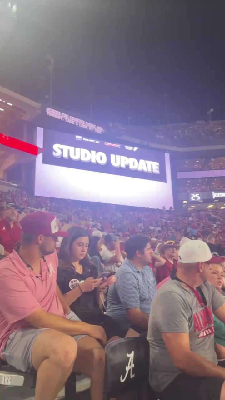Every home Football game, me and my cohost Nathan Brown host a live 90 second hit on the Jumbotrons in Bryant-Denny Stadium. In this hit, we cover other games going on during the Alabama football game. Aside from updating football games, prior to on camera, Nathan and I communicate with out Replay Producer and Replay Lead to pick and choose plays from each game and how many games we want to cover. We go on screen 45 minutes out from kickoff as well at Halftime.